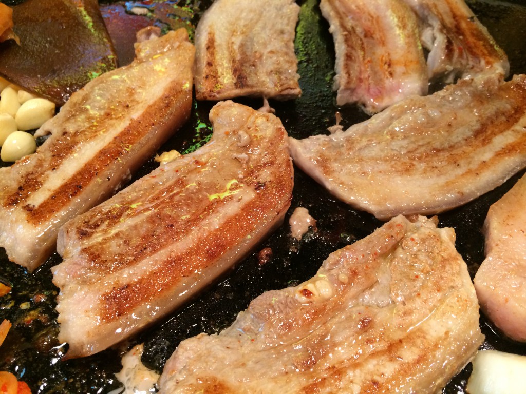 고기가 익어갑니다. 확실한 오겹에 두툼한거 보이시져??