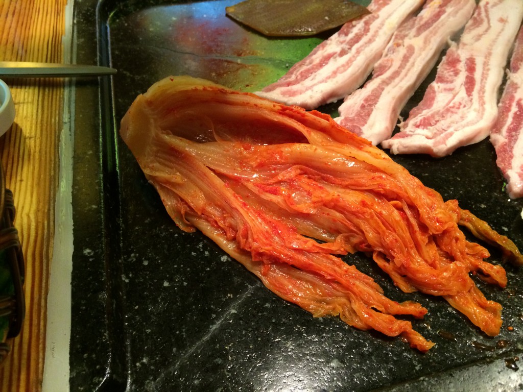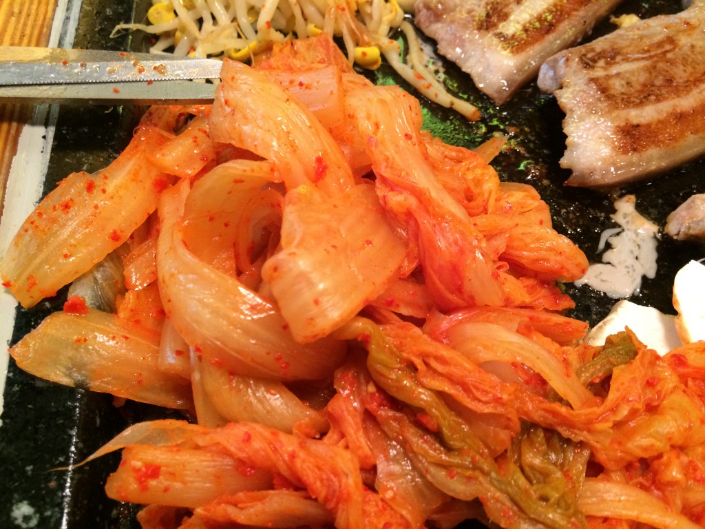 삼겹살에 빠지면 서운한 김치도 돌판위에서 익어합니다....