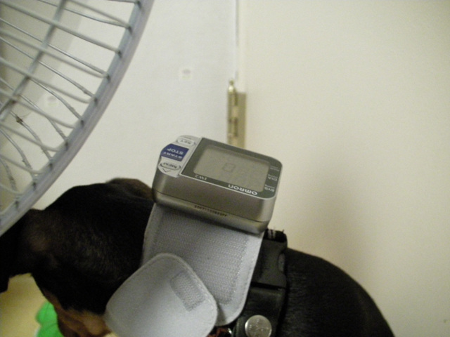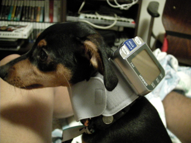개형의 건강이 좆치 않아 혈압을 재보려고 혈압계를 착용시켰습니다.