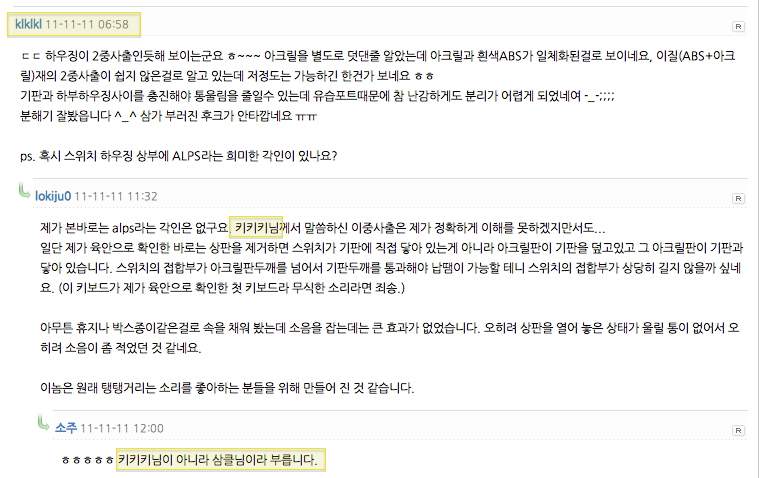 저는 처음에 옷디에 오고 나서 klklkl님을 "키키키"로 부른적이 있습니다.ㅋㅋㅋ