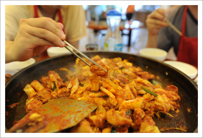 양념과 고추장 소스로 맛을낸 닭갈비 다먹은후 볶아먹는 맛있는 밥..