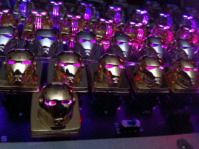 토요일날 일 끝나고, 책상위에 가득 세공인님 금속키캡을 꼽으면서....