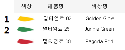 다이론 홈페이지에 가서 눌러보면 색과 번호가 나와요