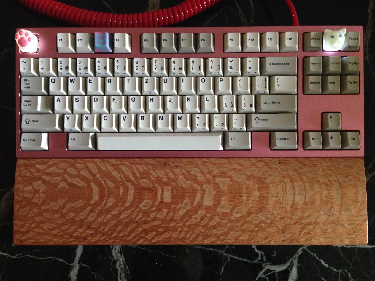 I think you should give her pink keycaps as a next present.Pink keycaps are good match for the pink housing!!!