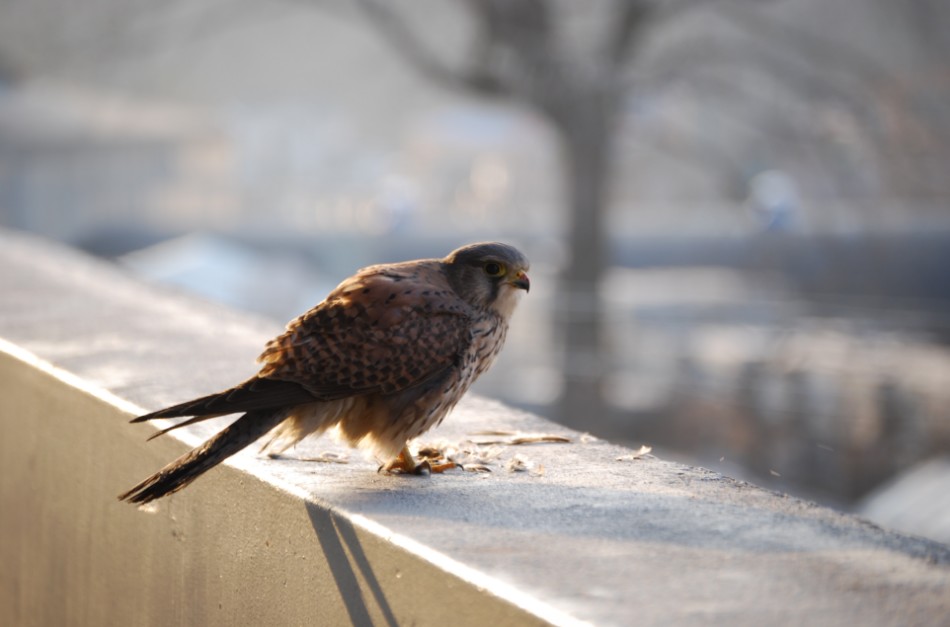 어서 참새한마리를 잡았는지 베란다에 앉아 잡은 참새를 먹고 있습니다.