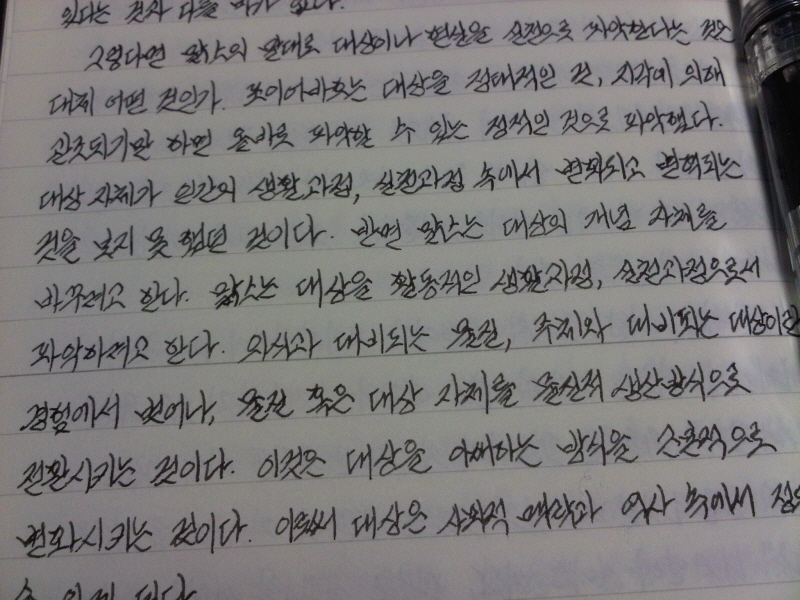 글씨는 꽤 얇게 나옵니다. 저 노트의 줄간격이 아마 7mm정도 할껍니다.