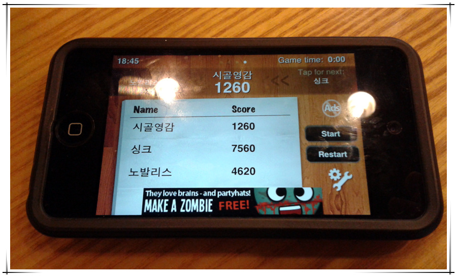 이후 영감님께서 마이너스 카드 한장 선물드려야 한다던 "콩이아니야"를 플레이 했습니다. ^^;;