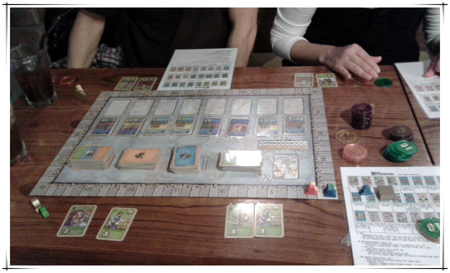 초반에 장인 고용을 등하시 여기시고 업글테크를 노리시던 노발리스님은 초반 자금의 고갈로 인해 상당히 난항을 겪으셨고~ 그반면 싱크님은 건물과 귀족들을 다양하게 모으시면서 균형있는 발전을 이뤄가십니다. 기냥님의 경우는 매번 한템포 늦으시는 구매로 인해 초반에 타이밍을 잘 못잡으셨고, 물론 후반에는 특수건물들을 잘 활용하셔서 귀족 카드를 나름 잘모으셨던걸로 기억합니다. 이번게임의 경우 숙련자인 제가 1등, 기냥님 2등, 싱크님 3등, 노발리스님 4등으로 게임이 마무리 되었습니다. 그나저나 게임을 마치신후에 이제 좀 감좀 잡았다 하시면 한게임 더를 외쳐보려 했지만 시간이 이미 많이 지나간터라. 다음번 번개를 기약하며 마무리 지었습니다. 오늘도 번개에 참석해주신 모든분께 감사하단 말씀을 전합니다. ^^;; P.S 다음번에는 아마도 카탄처럼 PC버전으로 좀더 습득을 하신후에 플레이 하실껄로 예상되는지라 꽤나 전술업이 빠르시지 않을까 하는 생각이 듭니다.