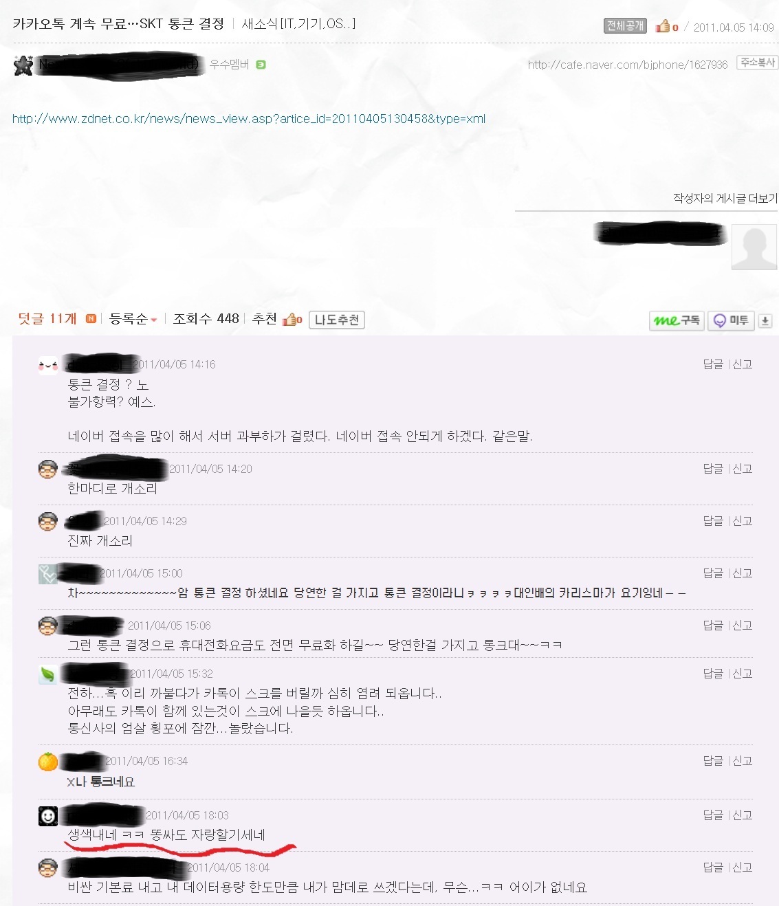 모든 사람이 스마트폰으로 돌아와서 카톡만 쓴다면 통신사들이 무슨 일을 저지를까요. ㅋㅋ