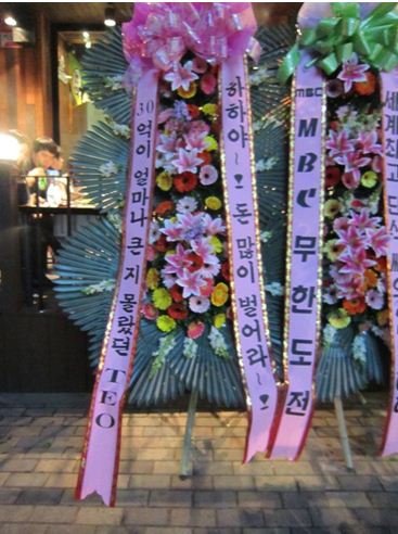 전에 유상무씨 가계 열었을때 보냈던 화환들도 정말 웃기던데....