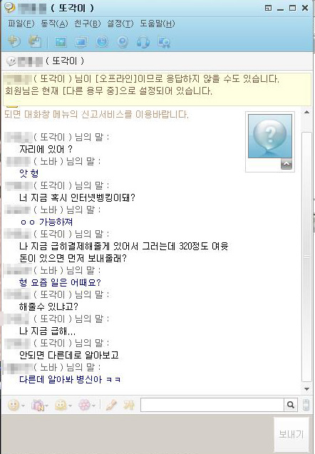 네, 맞습니다. 메신저 비밀번호 해킹 당하셨는지 오랜만에 이런식으로 안부가 들려오네요;;;